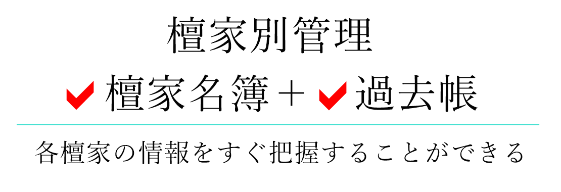 ●檀家名簿/過去帳(檀家、施主の住所連絡先情報+過去帳情報+葬儀布施情報+備考記載可能)