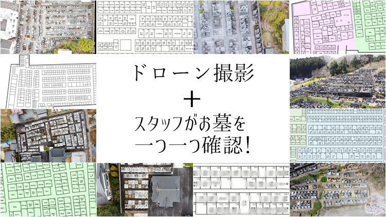 クラウド型で、自由にオプション開発できる、つまりご要望する機能を開発しシステムに組み込むことができるのは弊社のみ、このシステムのみと言ってもよいかと思います。全国の寺院でご利用いただいておりますが、墓地の管理、墓地地図もシステムに連動させたいというご要望が増えております。墓地管理システム自体はある程度容易に開発設置可能なのですが、墓地地図がない寺院、あっても昭和に作られた手書きの地図、さらに施主名も不明など、色々と問題があります。弊社では、自前でドローンを飛ばし墓地の空撮を実施、墓地の白地図を作り、そこから人海戦術で、墓地、お墓一基一基を目視チェックして、建立者情報、施主情報をまとめていきます。有名な地図作成会社に依頼すると数百万かかるコストが、弊社では独自手法によりお安く作ることが可能です。お寺まもる君システムをご利用でなく、墓地地図だけ作成希望の寺院にもご対応させていただきます。墓地地図作成をご希望でしたら是非ご相談ください。